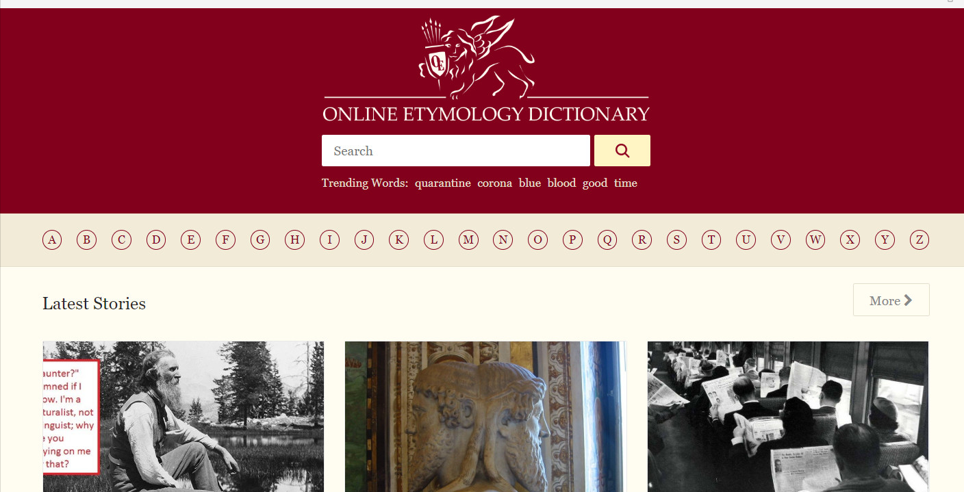网址https://www.etymonline.com/可搜索到词源,了解单词的演变故事,也提供了单词的多种搭配表达。